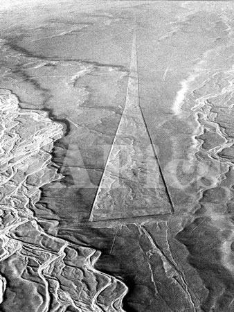 Nasca (Nazca), Peru. A clearing on the Socos pampa is surrounded by dry river courses that cross the desert.
