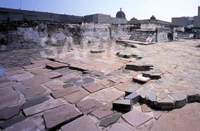 Templo Mayor, Mexico City. Aztec. The north patio with steps to the main temple.