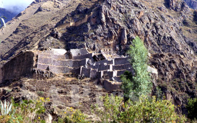 | Peru, Ollantaytambo: a fort on the flank of a hill overlooking the Urubamba river valley. It was from this and other heavily guarded places that the Inca repulsed a large band of Spanish invaders led by Hernando Pizarro. |
