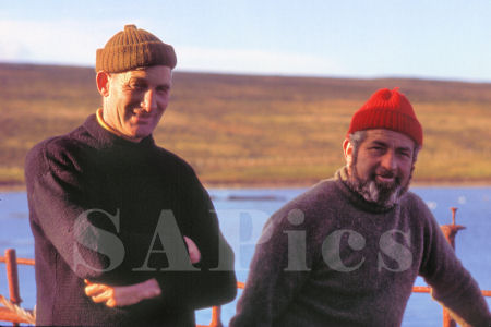 Salvage expert and leader of the Risdon Beazley team, Leslie 'Spike' O'Neill (left) with diver Don O'Hara.