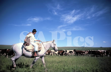 A Gaucho driving cattle over open grassland near Salto. More than three-quarters of Uruguayan land is given over to pasture.